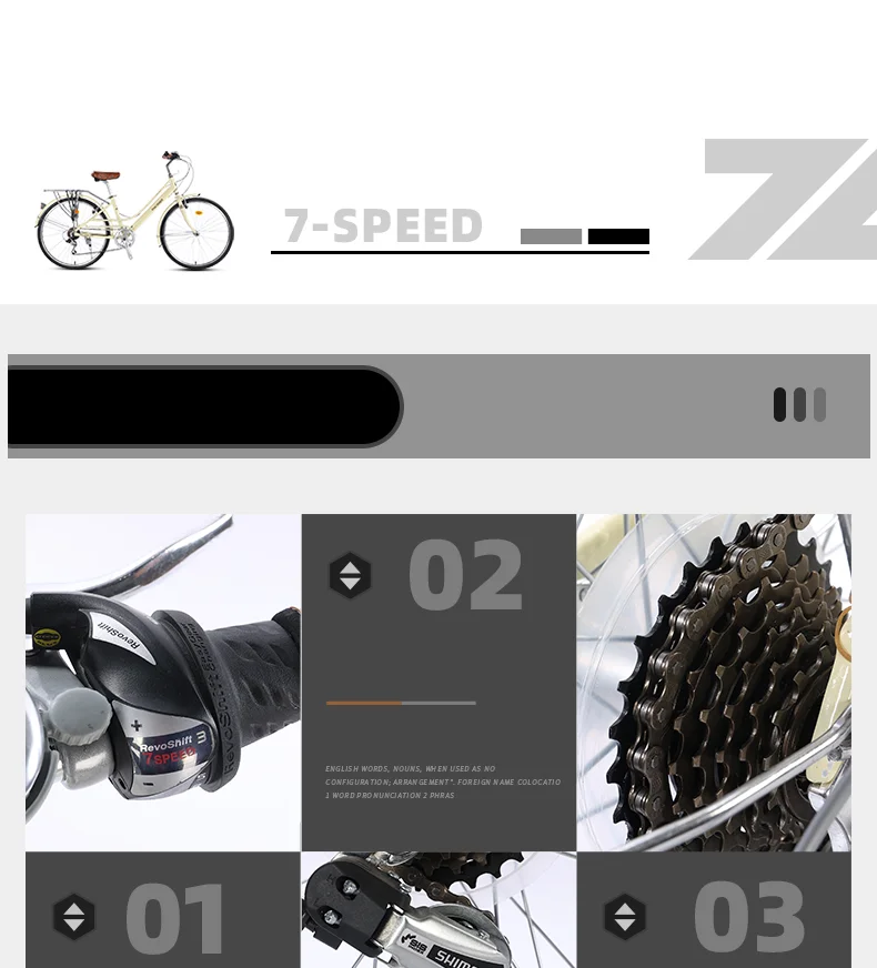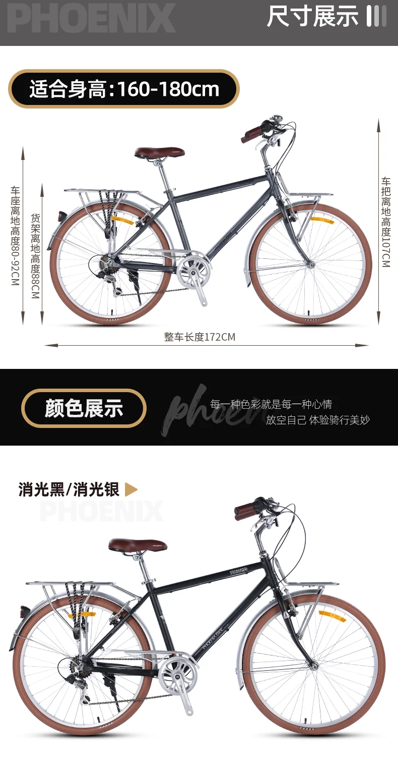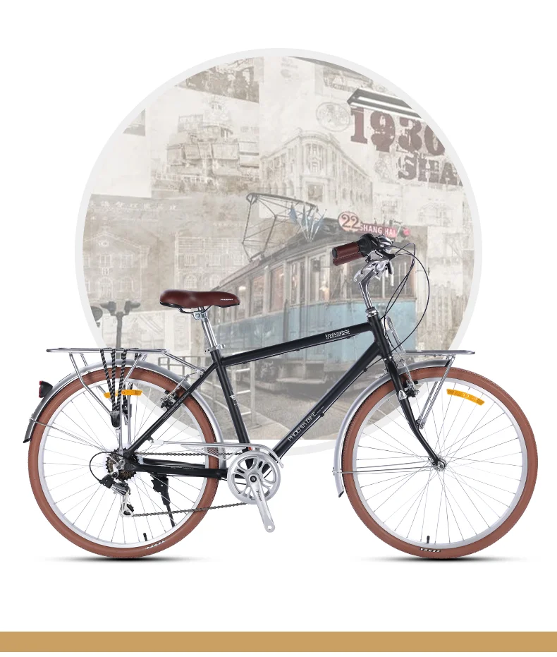 Bicycle with Variable Speed for Men and Women, Urban Commuting Bike, Cycling Bike, 7-Speed, Retro Style, 26 in