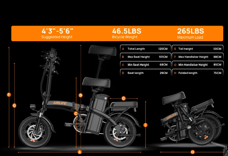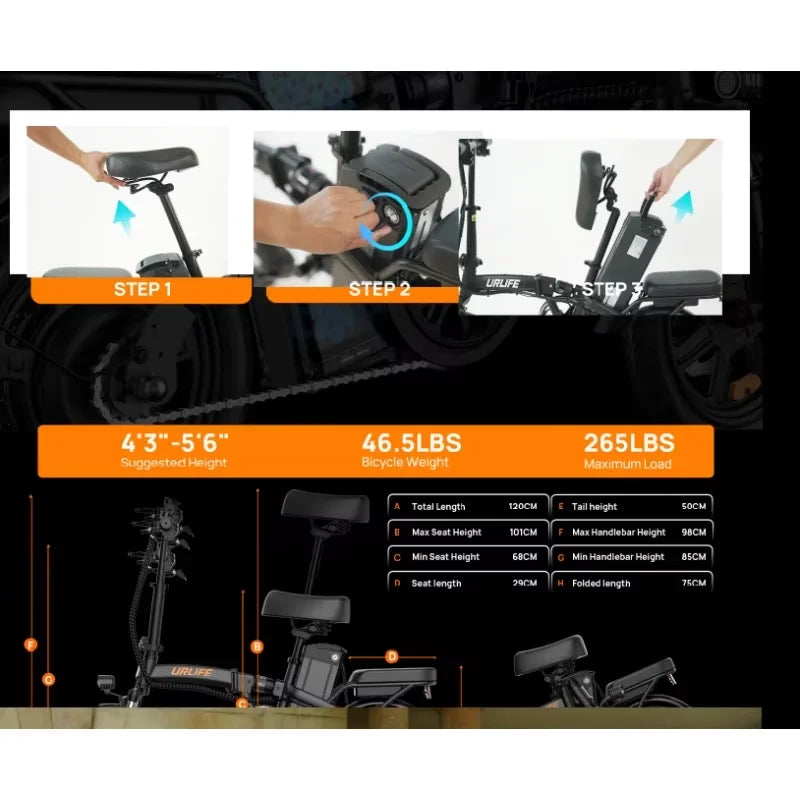 Folding E-bike 350W Brushless Motor 48V7.8AH Lithium Battery Electric Bicycle High Carbon Steel Frame 14 Inch Tire Electric Bike