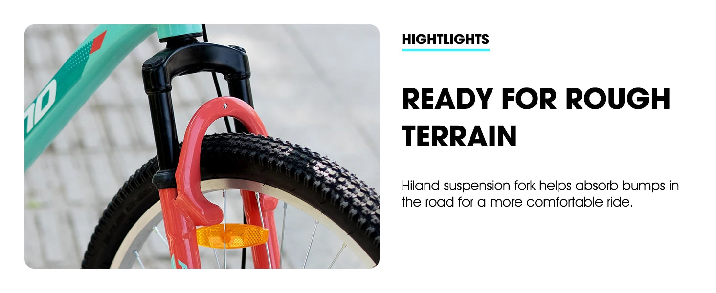 Front Fork: The front suspension fork absorbs all the bumps and dips you encounter on your ride; When riding on a flat road, you can Front the suspension fork to reduce the absorption of pedalling force; Not only does it save about 20% energy, it also increases pedalling efficiency and speed