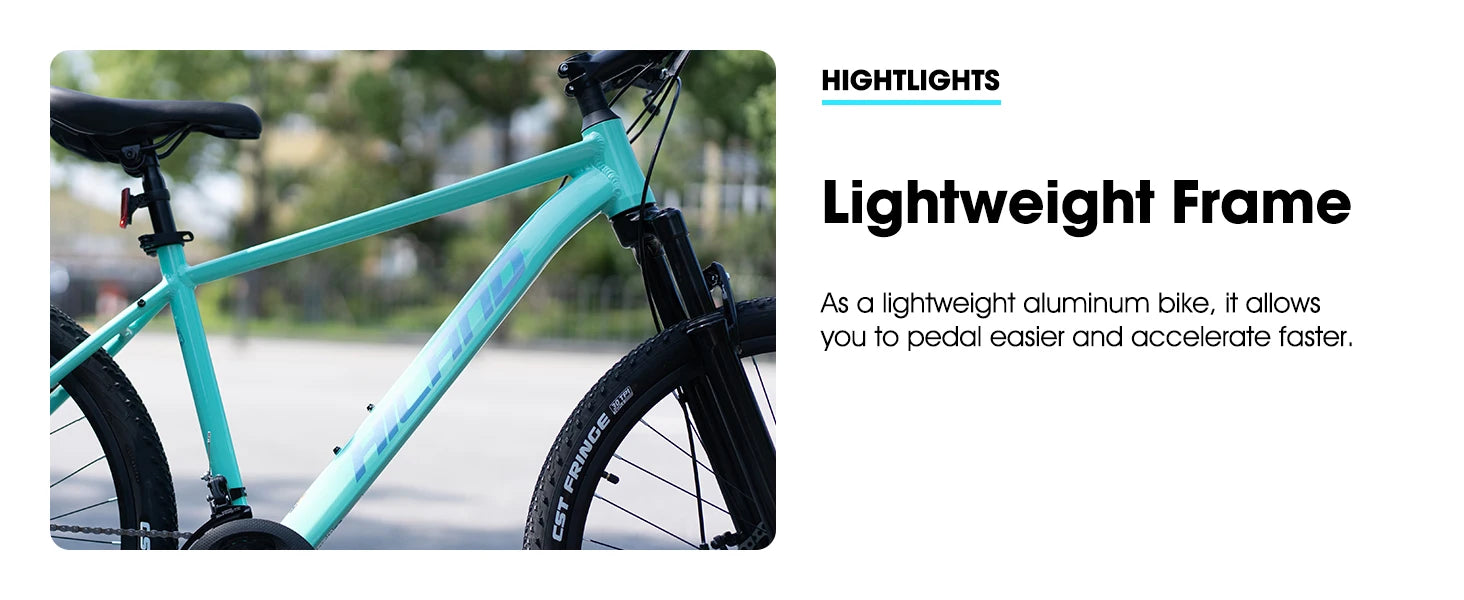 Durable Frame: Ultra light aluminum rigid frame is strong and durable; Both frame and suspension fork are capable of absorbing shocks, providing you with a stable and comfortable riding experience on trails, mountain roads, city streets, etc