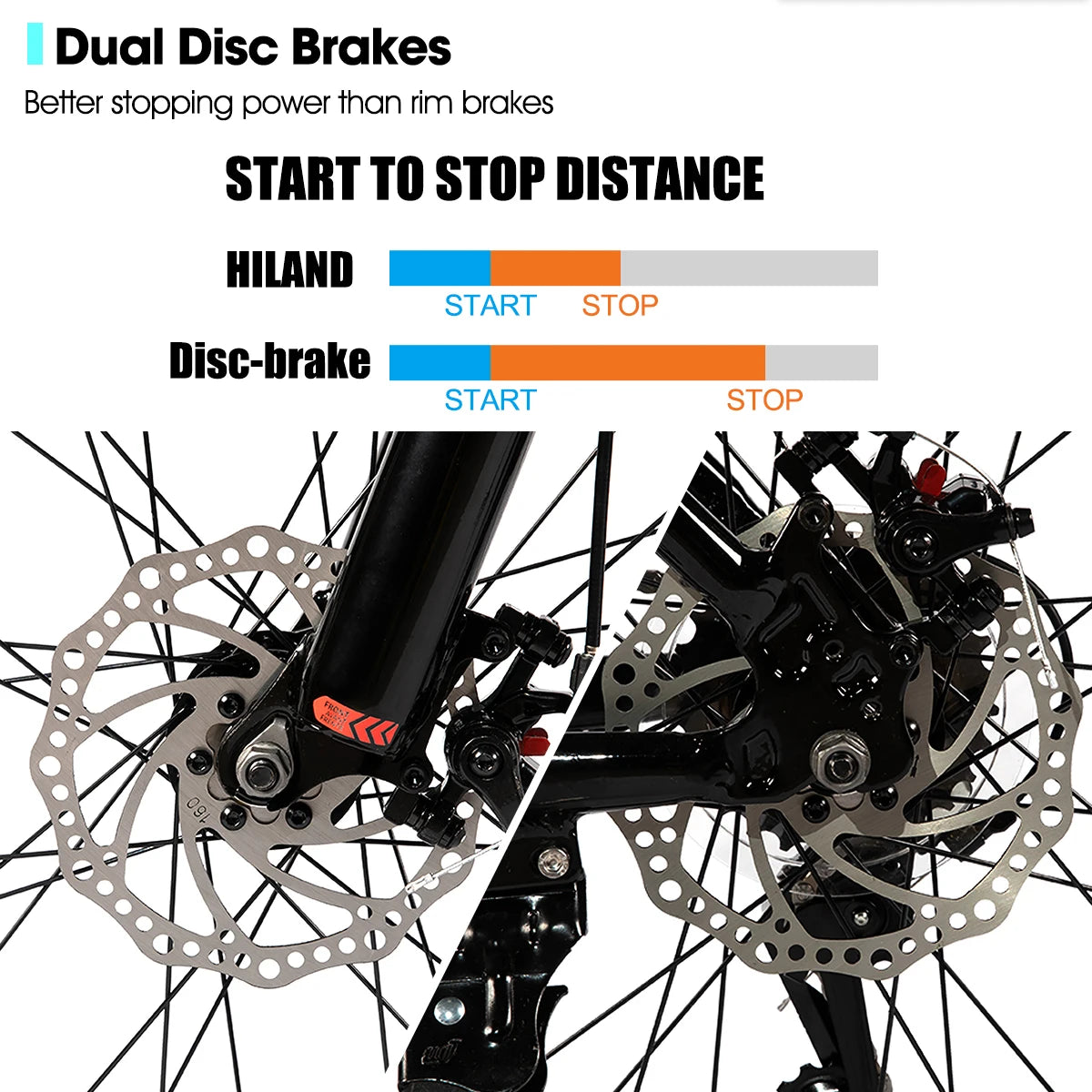 HILAND 26 inch aluminum alloy mountain bike for men and women, 21 speed bike with mechanical disc brakes, front suspension fork