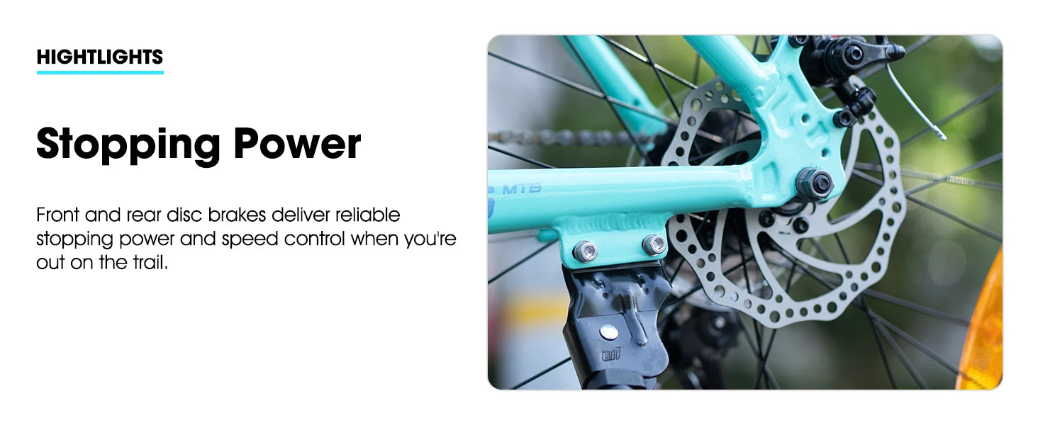 Instant Braking Response: Disc brakes provide instant stopping power for quick response in any situation, maintaining consistent performance in wet, muddy or icy conditions for increased safety in adverse weather conditions