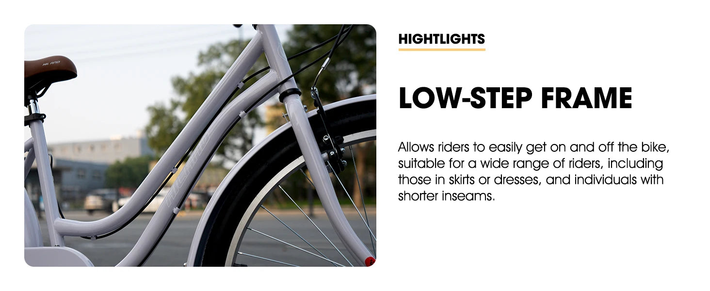 Niedriges Durchstiegsdesign: Ermöglicht ein einfaches Auf- und Absteigen und eignet sich für eine Vielzahl von Fahrern, einschließlich Personen in Röcken oder Kleidern und Personen mit kürzeren Hosenbeinen.