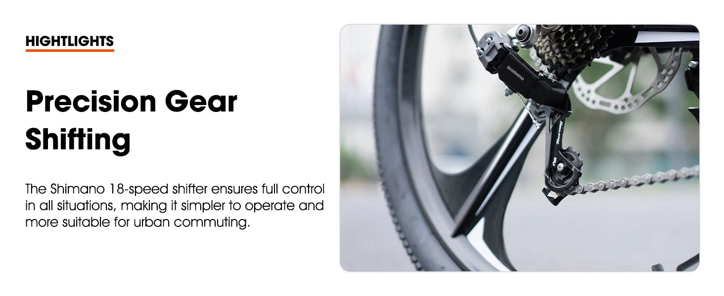 • 21 Speed Gear System: Equipped with a 21-speed gear system for versatile riding across various terrains, ensuring smooth and efficient pedaling