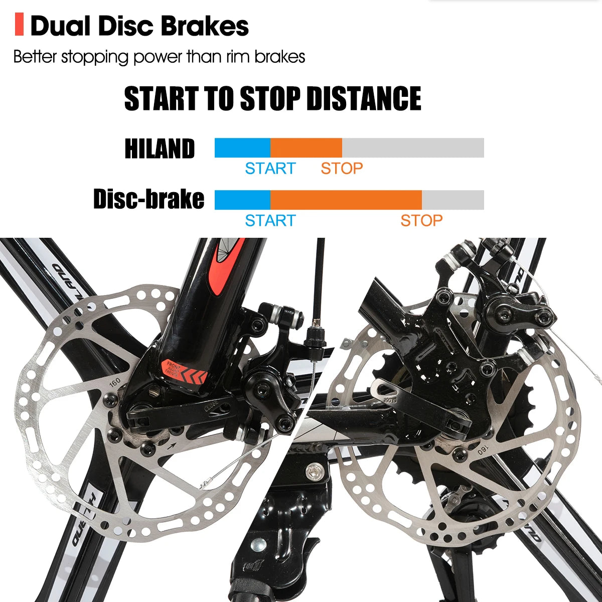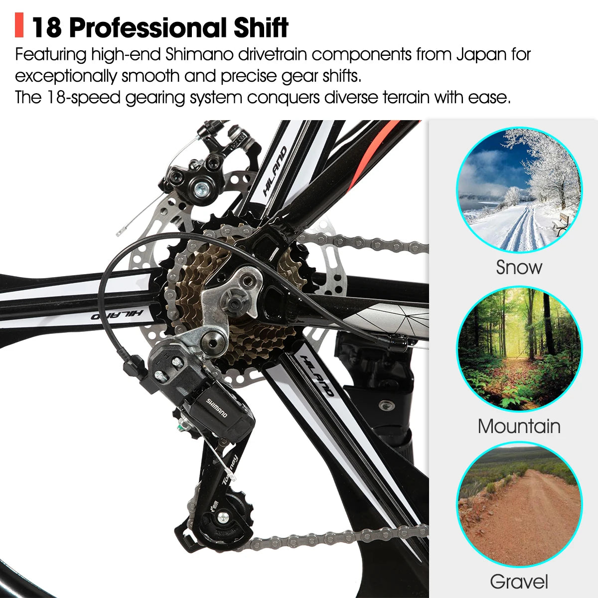HILAND Mountain Bike, 3 Spokes, 18 Speeds Drivetrain, Aluminum Frame 26 Inch Wheels, Disc-Brake Bike for Men Women Men's MTB