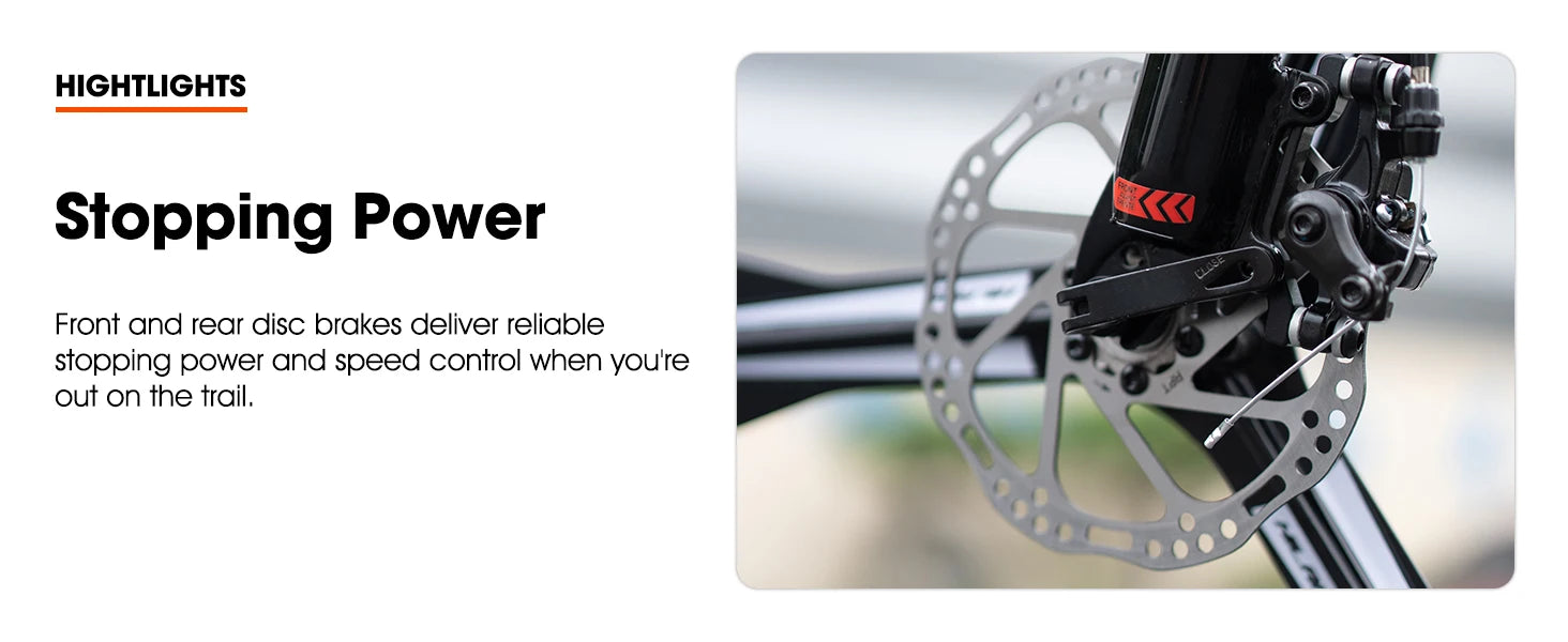 • 26 inch Wheels: Fitted with 26-inch wheels, providing a balanced ride and better handling, especially suitable for off-road adventures