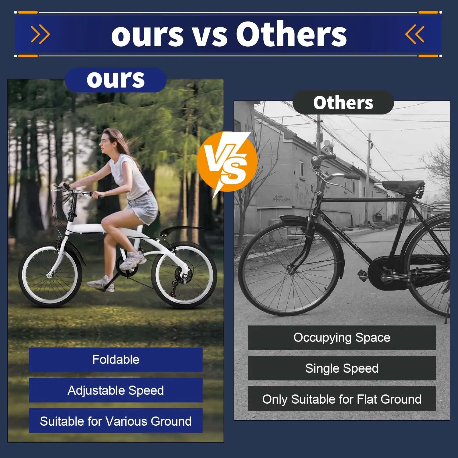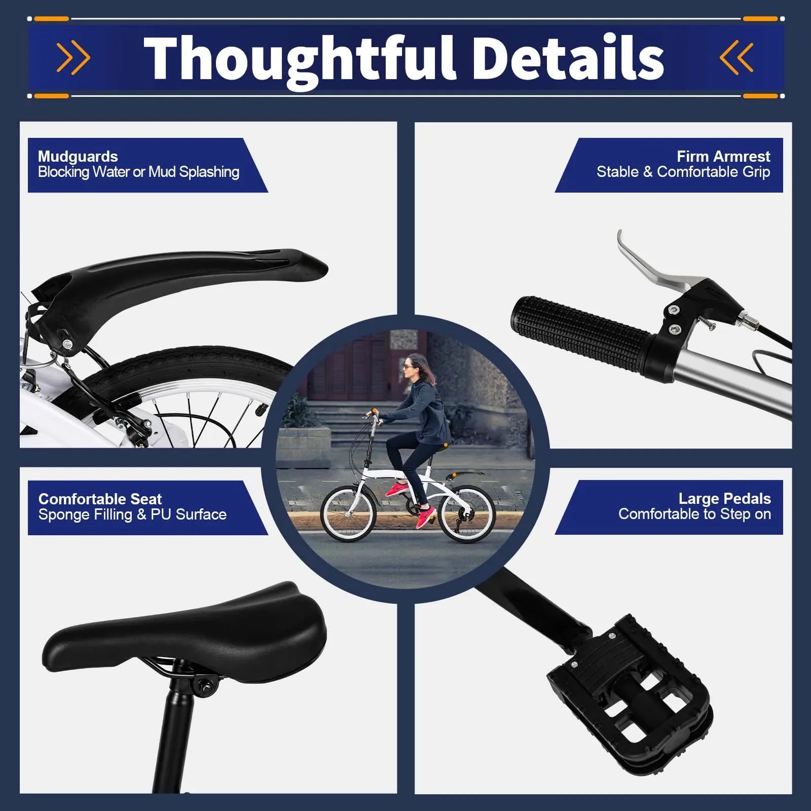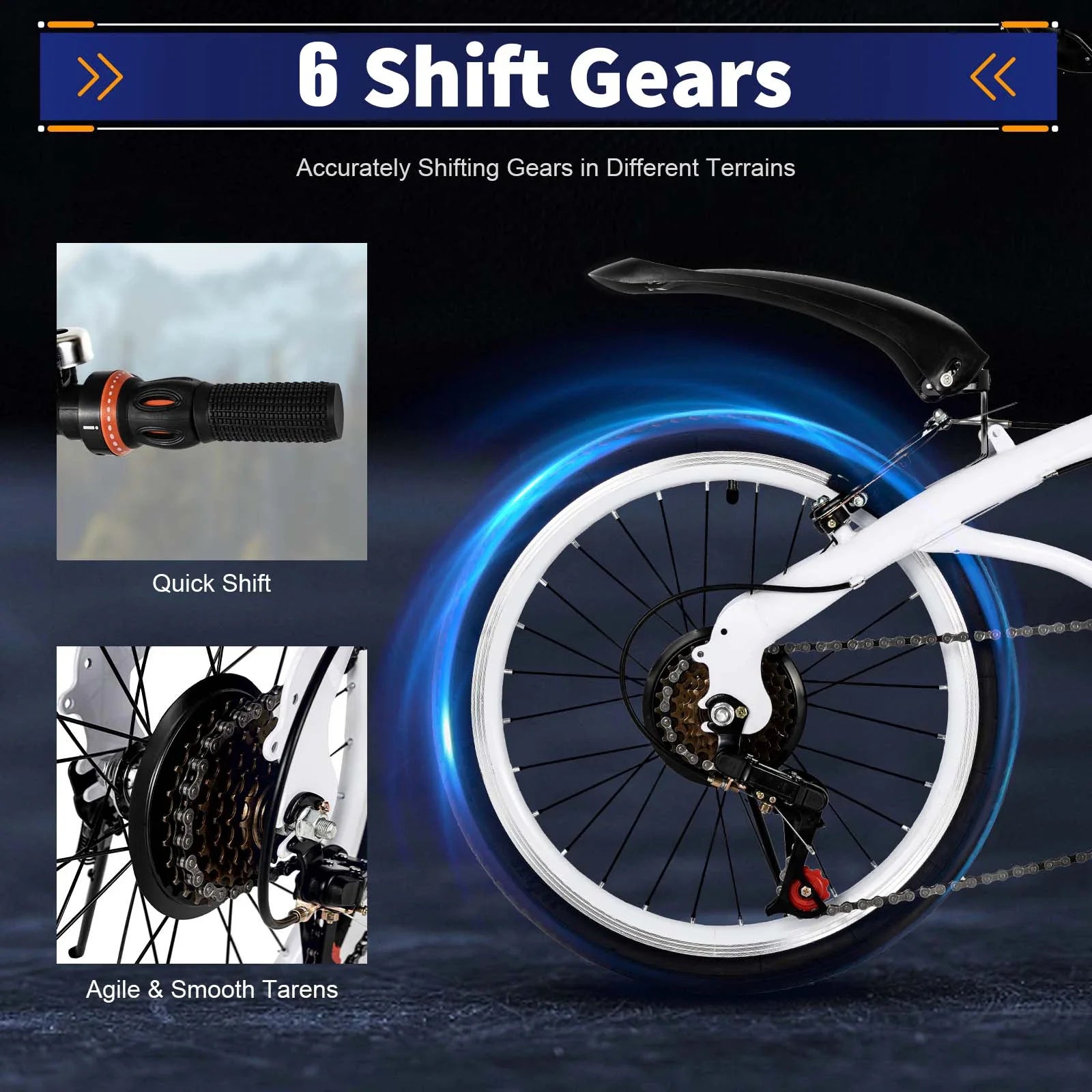 White Folding Bike Foldable City Bike Adult 20 Commute Bicycle 6Speed Gears